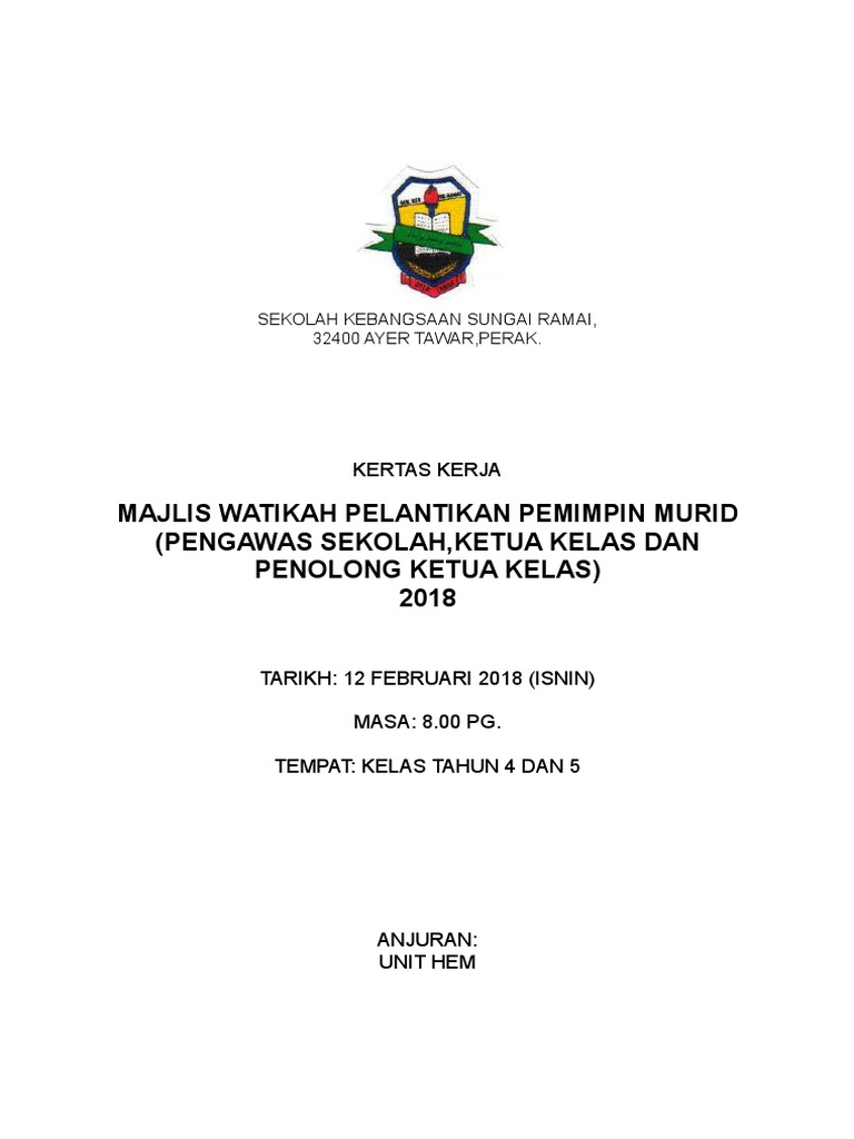Kertas Kerja Pelantikan Pengawas Ketua Kelas Dan Penolong Ketua Kelas Pdf