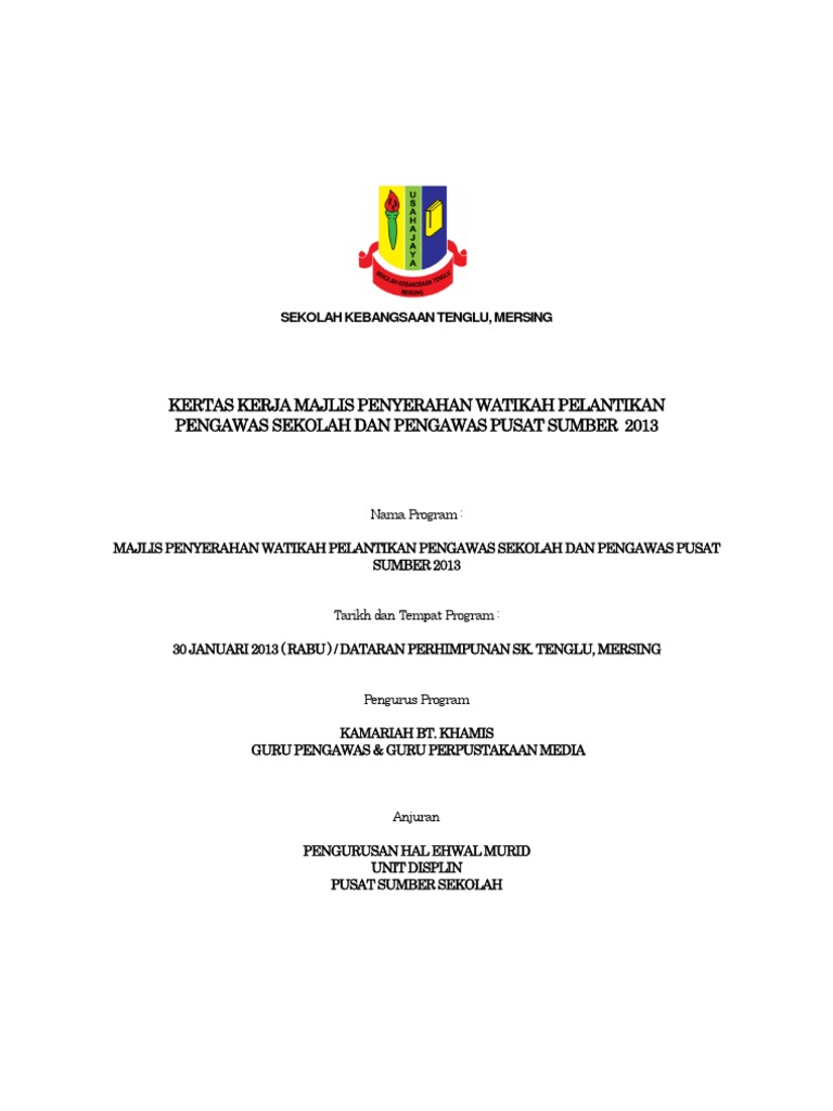 Kertas Kerja Majlis Watikah Perlantikan Pengawas 2012 Skmp Pdf