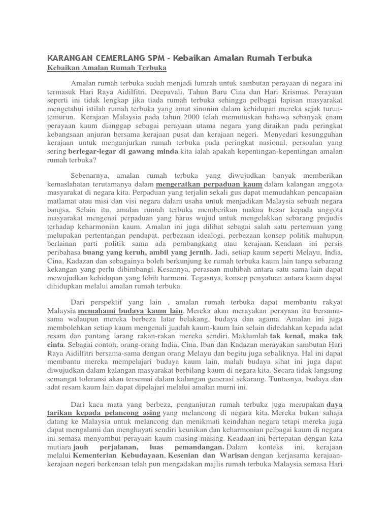 Doc Karangan Cemerlang Spm Kebaikan Amalan Rumah Terbuka Najat Ruhi Academia Edu