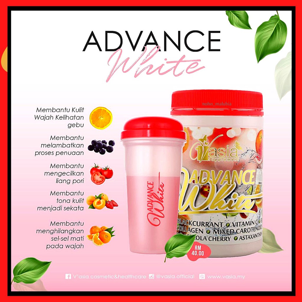 For best result consume up to 2 times a day before meal as drink suggested. Vasia advance white whitening collagen is formulated with grapefruit blackcurrant vitamin c beta carotene hydrolyzed collagen mixed carotenoids pine bark. ADVANCE WHITE V ASIA Advance White sarat dengan khasiat dari sumber bahan semulajadi seperti anggur ceri Acerola dan tomato bagi membantu mencerahkan kulit di.